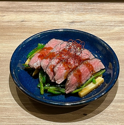 しっとり赤身のローストビーフの青椒肉絲仕立て。