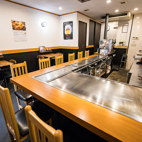 どこか懐かしい温もりを感じるアットホームな空間です。扉を開ければ、鉄板の熱気と香ばしい香りがお客様を迎えます。中人数の飲み会や女子会には、ゆったりとしたテーブル席がおすすめです。大人数でのご宴会には、事前連絡で貸切可能な2階座敷席をご用意します!