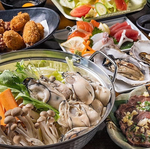 嬉しい120分の飲み放題が付いています◎新鮮な生牡蠣、焼き牡蠣、〆の牡蠣釜飯など、自慢の牡蠣料理を満喫できるコースから、豪華な牡蠣鍋と刺身盛りが付いたコースなど、多数ご用意しています。♪少人数2名様~幅広くご利用いただけますので、友人や同僚と美味しい牡蠣を囲んで楽しい時間をお過ごしください!ご予約はお早めに♪