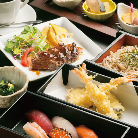 「お寿司もお蕎麦もいろいろ食べたい」を叶えるバラエティ豊かな特別御膳。食後にはデザートとお飲み物もつき、お腹満足の御膳です。