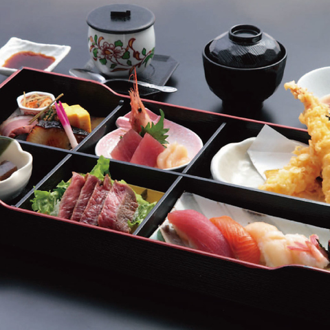 天婦羅・蕎麦・寿司や刺身で新鮮な料理がお楽しみ頂けます。お好み握りや盛り合わせなどのメニューをご用意