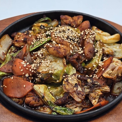 日本では珍しい本格ポジャンマチャ(屋台)料理を多数ご用意!特製ヤンニョムを絡めて香ばしく焼き上げたサバ焼きや、深い味わいのポジャンマチャうどんは絶品です。自家製のアレンジが光る大人気の「ジコバ風鶏焼き」は、ボリューム満点でお酒のお供に最高です。本場韓国の熱気と味を体感してください。