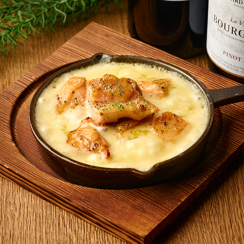 香ばしく焼き上げられたジューシーなグリルチキンが、とろりと溶けた濃厚チーズの海にたっぷりと浸かった、まさにチーズ好きにはたまらない一品。数種類のチーズをブレンドした、奥深いコクと豊かな風味が、チキンの旨みを最大限に引き出します。一口食べれば、口の中に広がるチーズの濃厚さと、チキンの香ばしさ、肉汁のジューシーさが絶妙なハーモニーを奏でます。熱々を頬張れば、至福のひとときを。