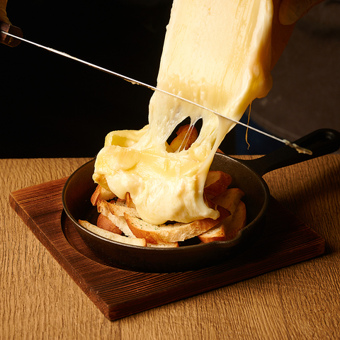 アツアツに溶かしたラクレットチーズを、お好みの食材にたっぷりとかけて楽しむ贅沢一品!濃厚なコクとクリーミーな味わいが、野菜やお肉のしっかり絡み、旨みを引き立ててくれます!お客様の目の前でとろけるチーズをたっぷり掛ける演出はライブ感があり、SNS映えも抜群!熱々チーズを存分に味わえる当店のオススメです♪
