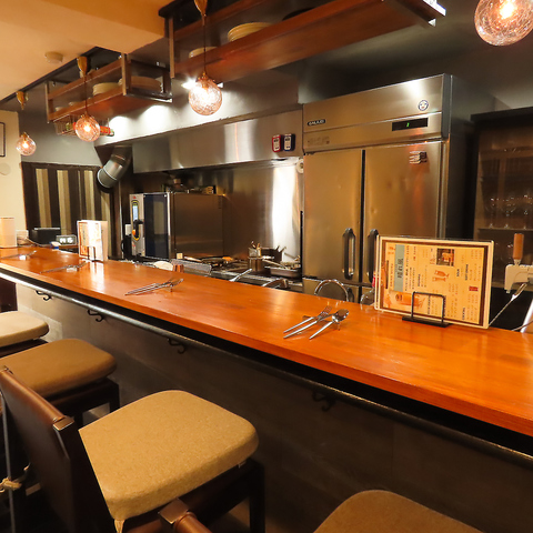 カウンター席では、熟練のシェフが料理をする臨場感あふれる風景を目の前で楽しめます。幅広のテーブルと座り心地のいい椅子を採用しているため、お一人様でもリラックスできるのが魅力。会話を楽しみながら美味しい料理を堪能できるので、デートにも最適です。シンプルながらも洗練された空間は、特別な夜を彩ります。