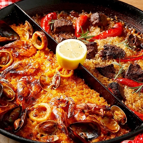 大人数でもシェアしやすい本格パエリア。テーブルを彩る迫力の一皿で、宴会の満足度が一気にアップ。