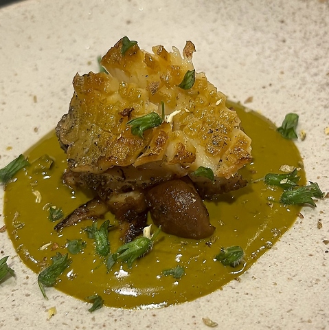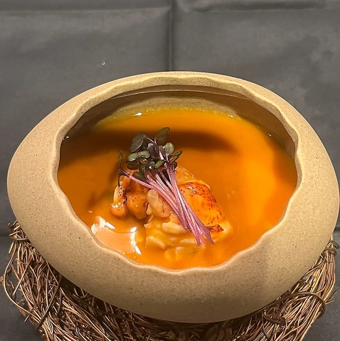 当店は一皿の量を控えめに盛ることで一般的なコースよりも品数豊富。独創的な食材の組み合わせのフレンチをご提供しています。派手さよりも、使う食材のひとつひとつに込められた生産者様の想いを大切にお客様にお届けしたいというシェフの気持ちが伝わる料理。食後のコーヒー・紅茶までこだわりぬかれたコースをご堪能くださいませ。