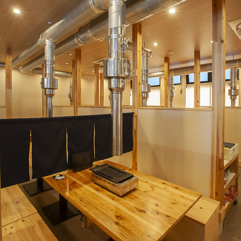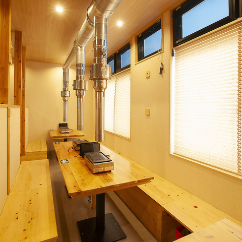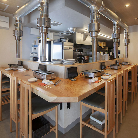 「金どこ」の自慢は、お肉の質だけではありません。一歩足を踏み入れると広がるのは、天井が高く開放感あふれるモダンな空間。 隣を気にせずゆったりと座れるテーブル席は、お喋りも弾むリラックスした設計になっています。各テーブルには強力な無煙ダクトが完備。煙たさを感じることなく、洗練された空間で心ゆくまでA5和牛を堪能できます。