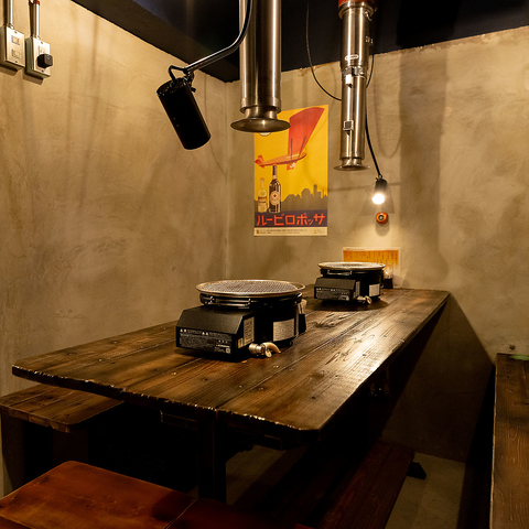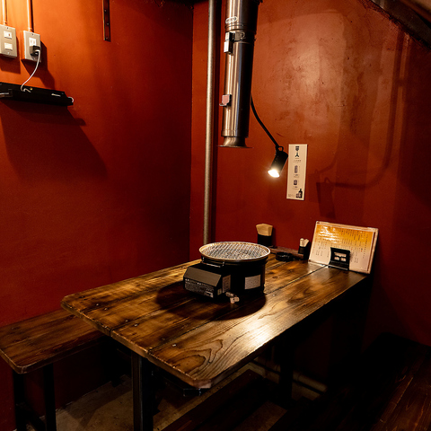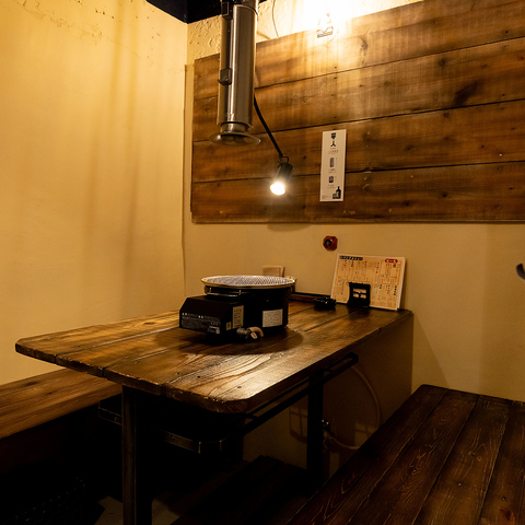 半個室風の落ち着いた雰囲気が漂う、モダンで統一された店内。どこかホッとするような居心地のよい空間で、ゆったりと焼肉をお楽しみいただけます。店内は喫煙OK!紙たばこのご利用も可能となっておりますので、お煙草をお吸いになられたい方もお気軽にご来店くださいませ。