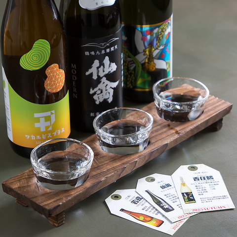 【厳選したお酒とともに】季節ごとに厳選したお酒をコース料理と共にお愉しみいただけます。料理の魅力を引き立てる絶品のペアリングで、特別なひとときをどうぞ。飲み比べセットもご用意しており、様々なお酒の味わいをご堪能できます。飲み放題プランも3,000円からご提案可能です。内容についてはお気軽にご相談下さい。