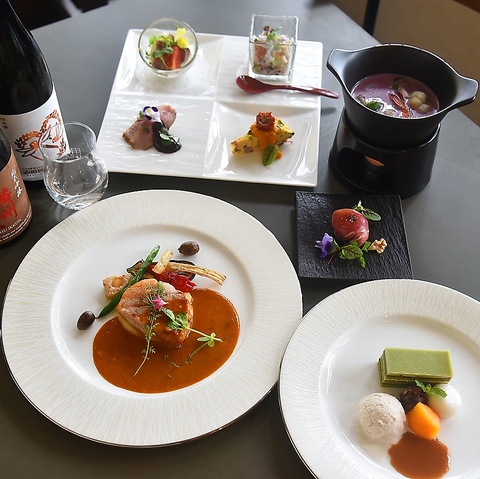 季節ごとの旬の食材をふんだんに使ったコース料理は、その時々で一番美味しい味覚をお楽しみいただけます。旬の野菜や魚介、お肉を、シェフの繊細な技術で洋風創作料理に昇華させました。メニューに合う日本酒やワインも豊富にご用意しておりますので、ぜひご一緒にご堪能あれ。