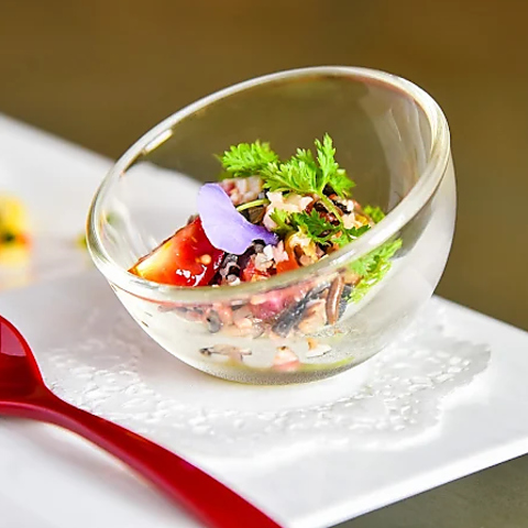 移りゆく四季の食材を取り入れた洋風創作料理をご提供。その時々で一番美味しい四季折々の味覚を大切にした一皿は、訪れるたびに新しい美味しさを与えてくれます。新鮮な野菜や魚介、お肉など、旬の味覚を楽しめるコース料理で、心も体も満たされる至福のひとときをお過ごしください。