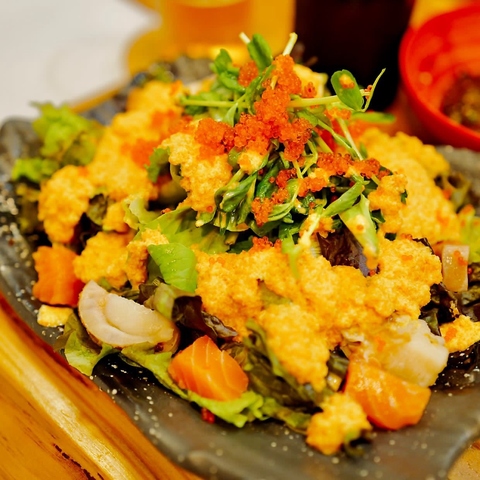 朝採れ新鮮野菜を贅沢に使用した、彩り豊かな特製サラダ。パリッとした食感と、濃厚な自家製ドレッシングの相性は抜群です。美味しく、ヘルシーに身体が喜ぶ一皿をご堪能ください。