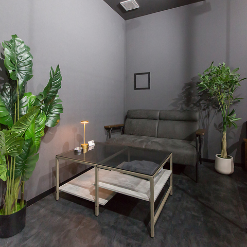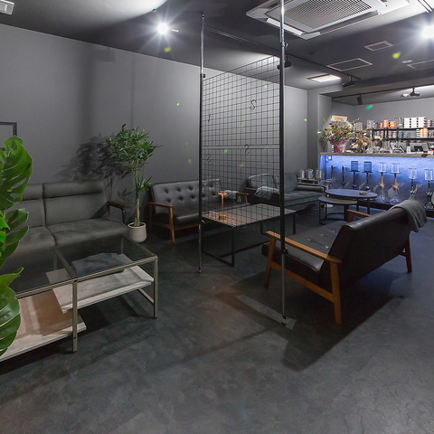 マットブラックを基調にした落ち着いた雰囲気です。シックな内装が、大人なシーシャ空間を演出します。当店は最大20名様までの店舗貸切にも対応可能ですので、誕生日パーティーやイベント後の打ち上げなど、プライベートな利用に最適♪静かでくつろげる雰囲気の中、特別なシーシャパーティーをぜひお楽しみください。
