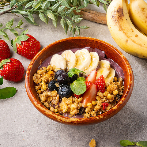 栄養豊富なアサイーにフルーツやシリアルをトッピング!!