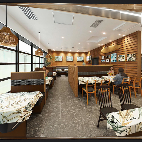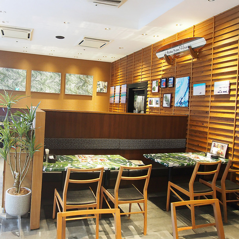 店内には心地よいハワイアンミュージックが流れ、木の温もりに包まれたリラックス空間を演出。ランチ、ディナー、カフェタイムなど、どの時間帯でもハワイの味と雰囲気を気軽にお楽しみいただけます。