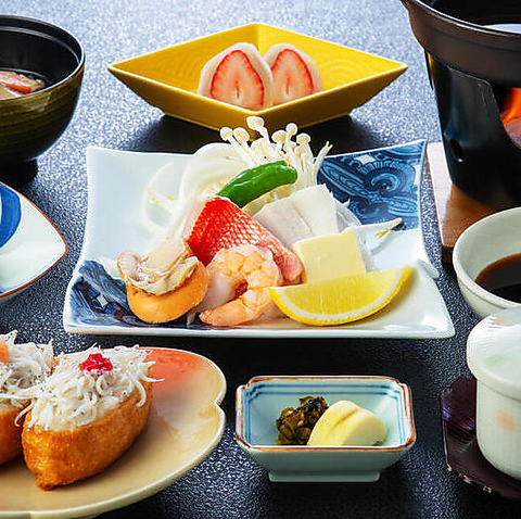 風味豊かなしらすを存分に味わえる御膳です。しらす明太御飯、サラダ、しらすお浸しなど、様々な料理でしらすをたっぷりご提供。海鮮あかもくトロロ掛けや茶碗蒸し、季節のデザートも付いた、彩り豊かで女性にも人気の御膳です。他にも自慢の御膳を取り揃えておりますので、ぜひ、ご堪能ください。