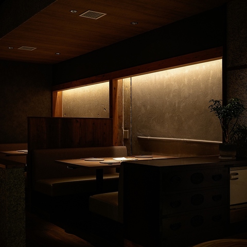 | 個室 | 4名様×3 | デートや接待に最適な個室を完備。落ち着いた空間と上質な設えで、大切な方との時間をより特別に演出します。周囲を気にせず、ゆったりとお料理や会話をお楽しみいただけます。 |
