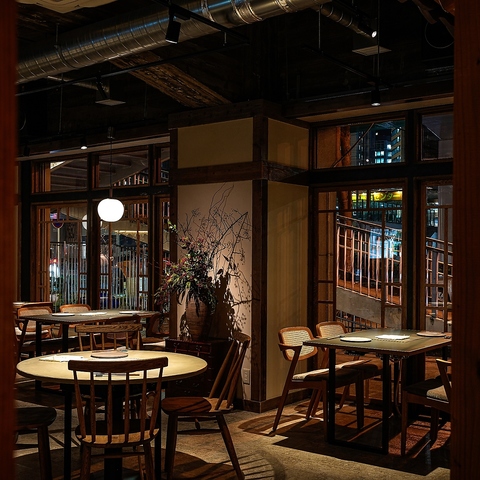 当店のテーブル席は開放的な席から眺めるキッチンと、厳選された和韓融合のお料理のハーモニー。特別な時間を彩る和韓の上質な空間で、職人がこだわるお料理と豊富なドリンクメニューを堪能ください。接待や記念日、大切な方とのディナーに最適。夜景とともに、贅沢なひとときをお楽しみいただけます。