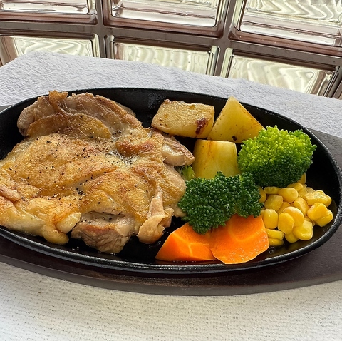 自家製ジューシな分厚い鉄板チキンガーリックソース