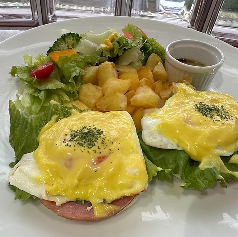 とろり半熟のポーチドエッグに濃厚なオランデーズソースがかけたブランチ