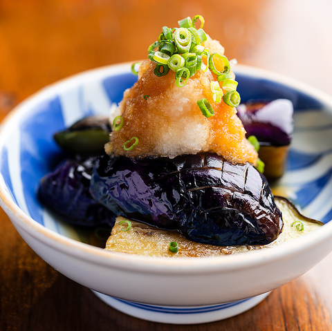 東京の下町北千住で人気の揚げナスのおろしぽん酢や、セセリとにんにくの芽の黒胡椒和え等、名物以外も「いつものあて」としてご用意しております♪