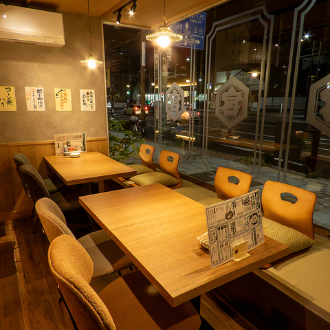 【雰囲気自慢のテーブル席】店内奥にある4人掛けテーブル席は、仲間との会話を楽しむための理想的な場所です☆広々としており、肩が触れ合う心配もなく、ゆったりとした時間を過ごせます!