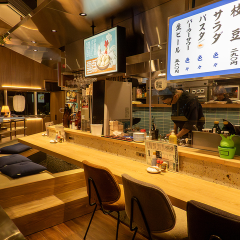 【カウンター席で味わう贅沢な時間】2名ずつ座れるカウンター席は、キッチンのすぐ前にあり、料理の香りや音を楽しむことができます。活気と香りに包まれ、心地よい時間を過ごせます★