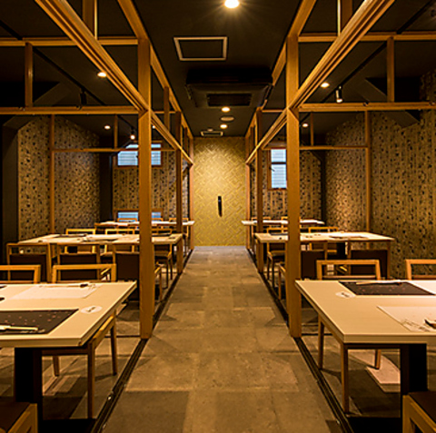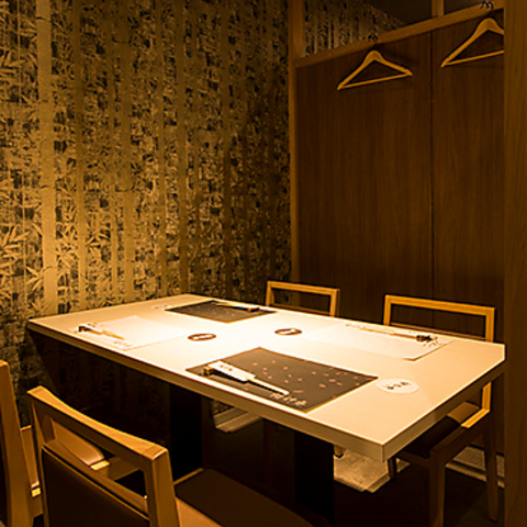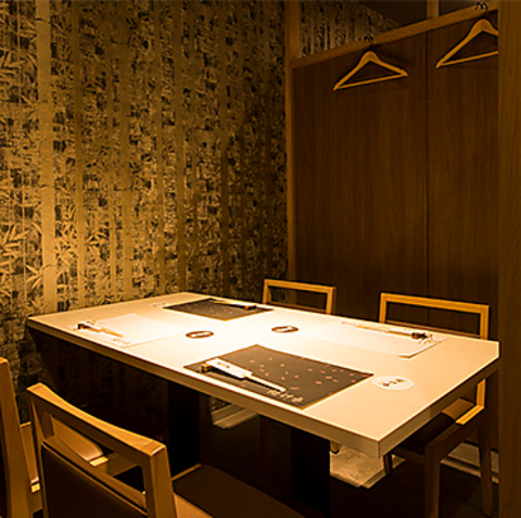 カウンターと少し離れた配置のテーブル席はひっそり隠れ家のような雰囲気を感じられるお席で、6名様までご案内可能です。2卓合わせてのご利用の場合もご案内可能です。宴会や接待でのご利用でお楽しみ頂けます。