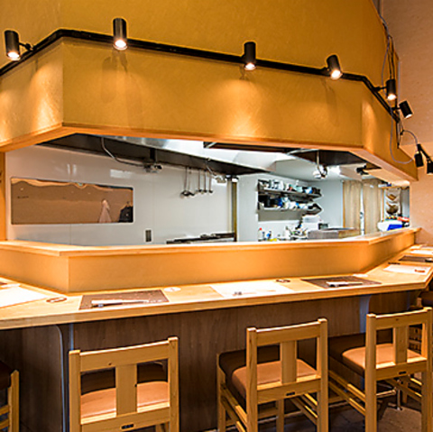 店主やスタッフとの会話も楽しめ、落ち着いた雰囲気のカウンター席。お仕事帰りのお一人様でのご利用・デート・接待など様々なシーンで、常連様はもちろんのこと初めてご来店頂いたお客様もお気軽にお楽しみ頂けます。