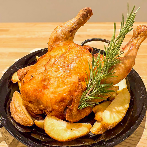 メニューの中でも堂々の人気を誇る「1羽まるごとハーブチキンのからあげ」は、当店自慢の逸品です♪特製のハーブでじっくりとマリネされたチキンは、一口食べればその肉汁が溢れ出すほどのジューシーさ!見た目のインパクトも抜群で、テーブルに運ばれた瞬間、周囲の視線を一気に集めます◎ぜひ、ご賞味ください。
