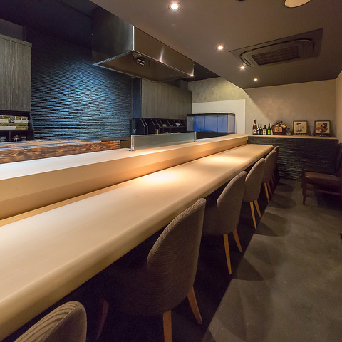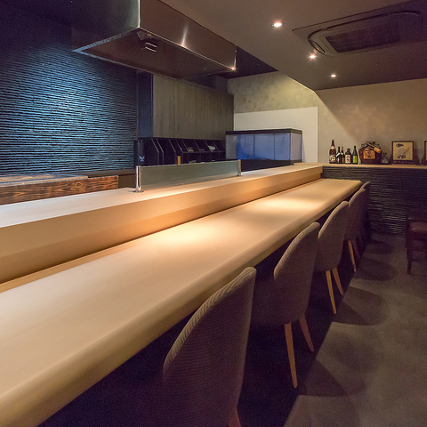 和の雰囲気が漂う高級感あふれる空間が、特別なひとときを演出いたします。ライブ感が楽しめるカウンター席や、プライベート空間を確保できる個室、足を伸ばしてリラックスできる掘りごたつの座敷など様々な用途でご利用いただけます。貸切は最大40名まで可能ですので、お気軽にご利用ください。