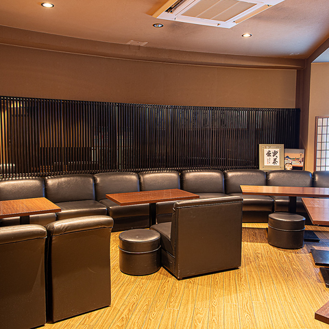 ≪座り心地の良いソファでゆったり≫座り心地の良い黒のソファ席は、長時間の滞在でも疲れません。4名様テーブル席を5卓ご用意しており、ご家族連れやグループでのご利用にも対応可能です。接待や記念日など、特別な日のお食事にもふさわしい落ち着いた雰囲気です。貸切は10名~最大15名様まで承ります。