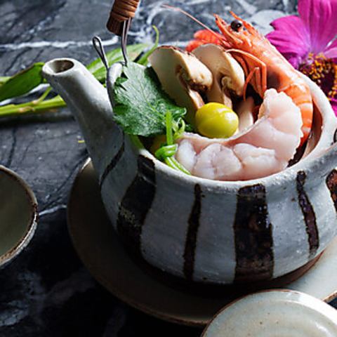 最上級の食材を惜しみなく使用し、特別な演出を加えた、まさに「極み」のコースです。冬は旬の高級食材の河豚をふんだんに使用し、厳選刺身5種などが加わって、"匠"コースよりもさらに豪華な内容となっております。大切なお祝いや、心ゆくまで贅沢を極めたい日に最適です。特別なひとときをご堪能ください。