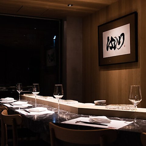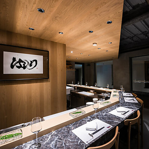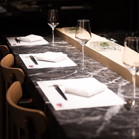 職人の手仕事を目の前で楽しめるカウンター席で、美味しいお鮨とワインのマリアージュを満喫できます。