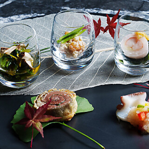 季節に先駆けて出回る食材を意味する「はしり」をコンセプトに、旬の味覚を通して移ろう四季を感じられるお料理をご提供します。厳選した初物をたっぷりと使用した『おまかせコース』では、前菜からデザートまで、その時期ならではの贅沢な味わいを存分にご堪能いただけます。コースをメインに単品のご注文も承ります◎