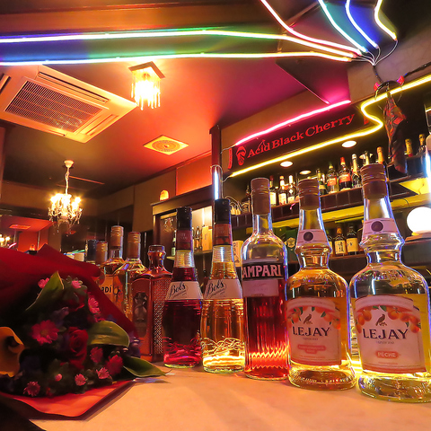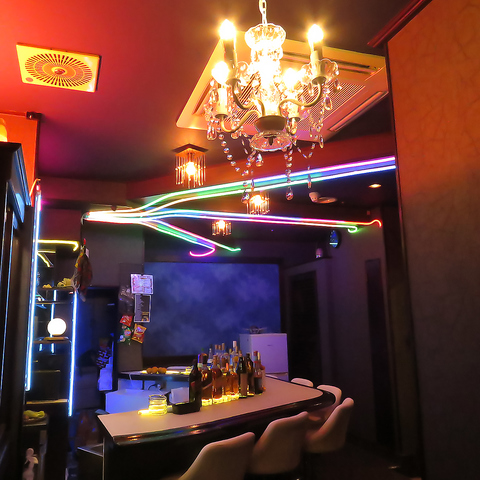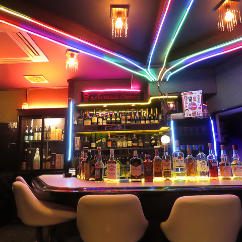ネオンの光に包まれた店内は、非日常を感じる大人の癒し空間。カウンター7席とテーブル1つのアットホームな雰囲気で、お一人様でも居心地抜群。オリジナルカクテルや限定酒をコスパ良く味わえ、朝方まで楽しめる隠れ家的バーです。