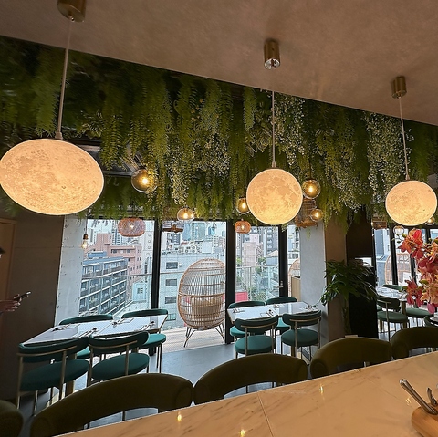 まるで森の中にいるような安らぎと、夜空に浮かぶ月のロマンチックさ。 当店の内装は、すべてが計算されたインテリアデザインです。 美しい空間でのお食事は、最高の思い出に。#インスタ映え も抜群です! 非日常の空間で、極上のリラックス体験を。