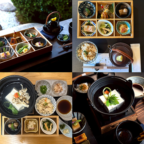 お昼には京都の魅力が詰まったランチ御膳をご用意しています。一番人気は、伝統的なおばんざいをふんだんに盛り込んだ「清水御膳」。また、まろやかな湯豆腐を中心に季節の小鉢を楽しめる上品な「京御膳」もございます◎四季の移ろいを感じられる美しい日本庭園を眺めながら、ゆったりとしたランチタイムをお過ごしいただけます。