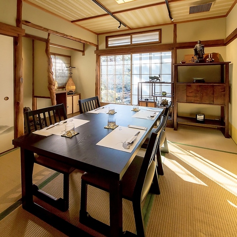 4名様からご利用いただける静かな和室の個室をご用意しております。周りを気にせずにお過ごしいただけるプライベート空間は、家族でのお食事や、ご夫婦の記念日、結婚式の二次会などにも最適です。ゆったりと流れる時間の中で、旬の懐石料理を囲みながら、心温まるひとときをお過ごしくださいませ◎