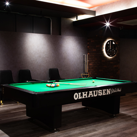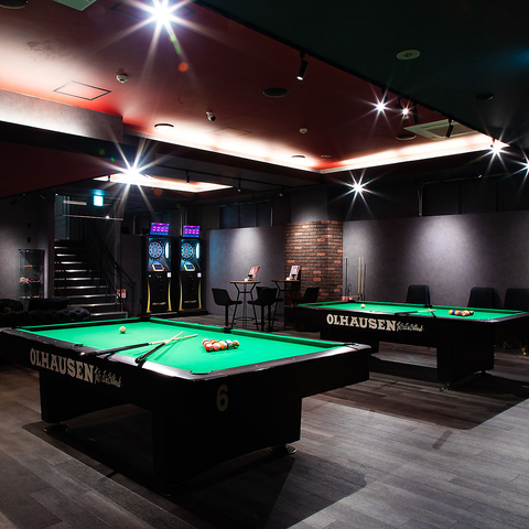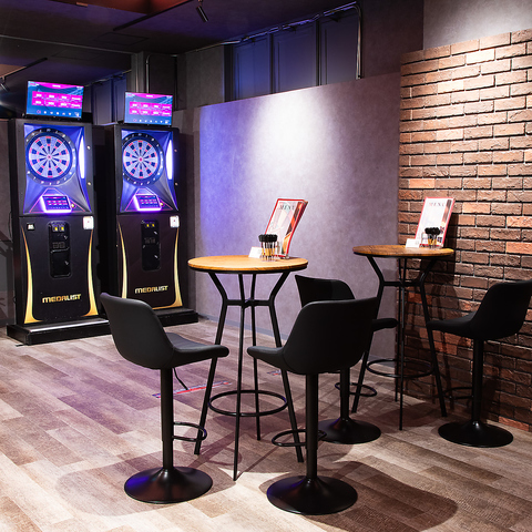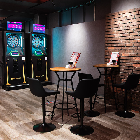 スタイリッシュな空間に緑のフェルトが映える落ち着いた雰囲気で、大人の遊びをじっくり楽しめます。奥には最新ダーツ機も2台完備。照明演出やレンガ調の壁が非日常感を高め、仲間とのひとときがさらに特別に。カジノと合わせて、遊びの幅が広がる贅沢なエンタメ空間です。貸切利用もお気軽にお問い合わせください。
