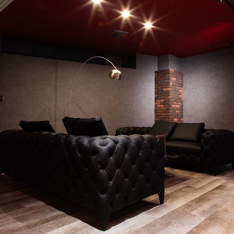 ゆったりくつろげるソファ席も完備。重厚感のあるレザーソファと間接照明が落ち着いた雰囲気を演出し、ゲームの合間にリラックスするのに最適です。レンガ調の壁やウッド調の床が空間に温かみを添え仲間との会話も自然と弾みます。カジノやダーツ、ビリヤードを楽しんだ後、一息つきながらゆったりとお過ごしいただけます。