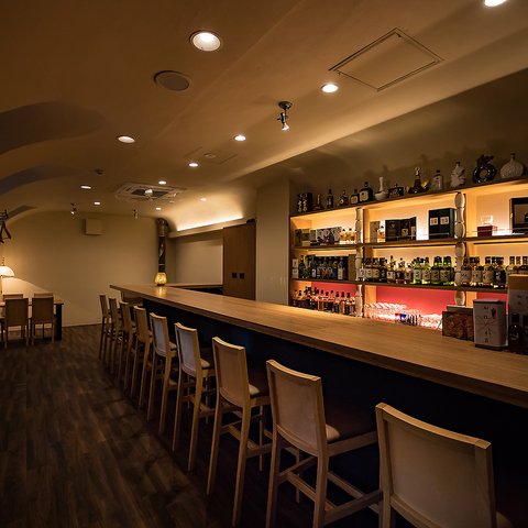 ゆっくりと落ち着いた空間で、リラックスして過ごせるテーブル席。デートや記念日はもちろん、2軒目のご利用にもおすすめです。ウィスキーはレアなものからメジャーなものまで取り揃えているので、お好みに合わせてお選びいただけます。特別なお時間をお過ごしください。