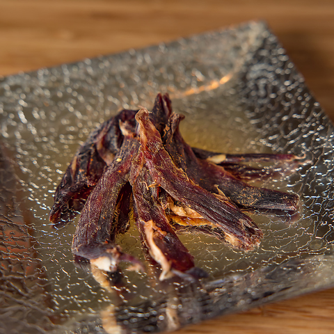 新鮮な国産の鶏むね肉を使用したこだわりのチキンジャーキーです。しっかりと乾燥し噛み応えのある食感に仕上げていますので、噛むほどに国産鶏の旨みが溢れる逸品です。