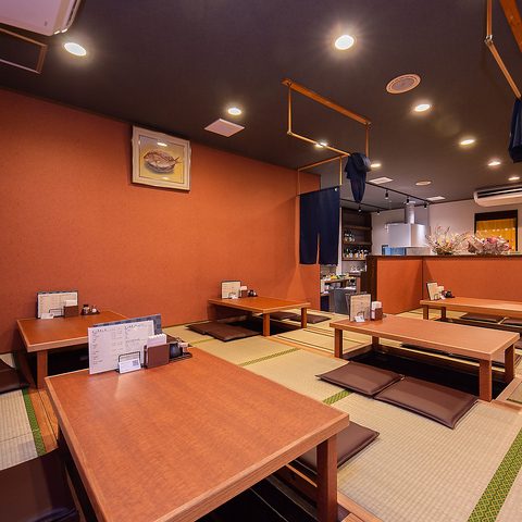 店内全体が和を基調とした落ち着いた雰囲気で、ゆったりとした時間を過ごせます◎通常、最大30名様までの宴会に対応可能ですが、お席を離れても良ければなんと60名様~70名様までの大規模宴会も承ります★大人数での貸切など、特別なご要望もお気軽にご相談ください。思い出に残る宴会をサポートいたします♪