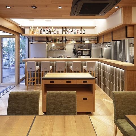 調理風景が目の前で見えるコの字型カウンターを主体とした店内空間と、喋りやすいスタッフが揃っています!