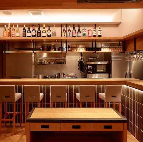 コの字型カウンターを主体とした内装になっております。調理風景やドリンク作りが目の前で見えるのでライブ感も楽しめます!