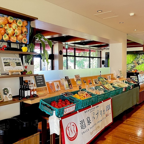 レジ横にはお野菜の販売もあります。お料理でも使われている愛彩ファーム九重の「温泉パプリカ」も販売されています。