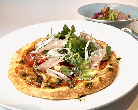 大分県九重町にある『ArtTableいろのわ』の自社農園「愛彩ファーム九重」産のトマトやバジルなどを使用しており、チーズがたっぷり乗っていて、トマトの甘酸っぱさとバジルの風味が相性抜群です。