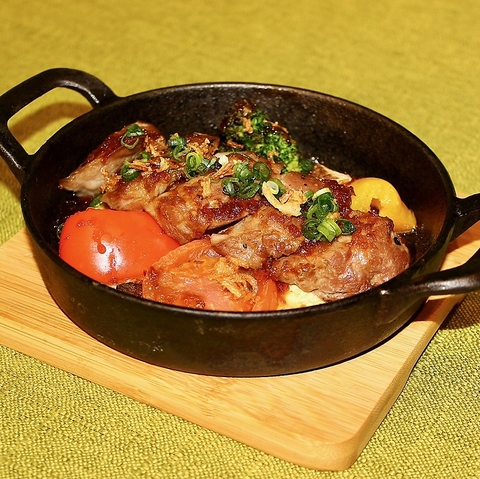 温泉パプリカを丸々1玉分スキレットで焼き上げたトロみ触感を味わっていただきたいグラタンです。